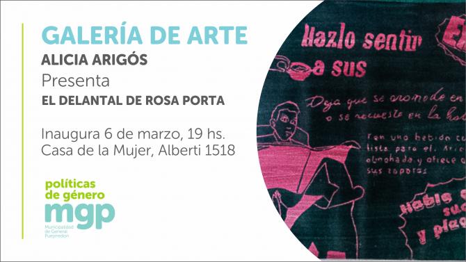 La Dirección de Políticas de Género inaugura una nueva muestra en su Galería de Arte. En esta ocasión presentamos “El Delantal de Rosa Porta” de la reconocida artista marplatense Alicia Arigós. La exposición inaugurará el viernes 6 de marzo, a las 19 horas en Alberti 1518 y podrá visitarse hasta el 15 de abril, de lunes a viernes de 8 a 20 horas.