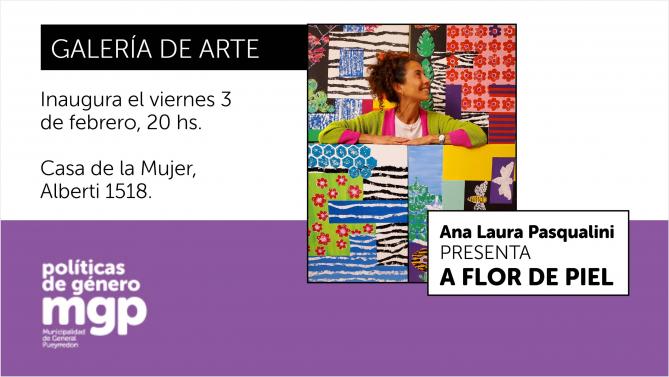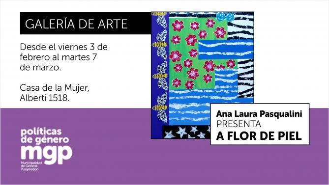 Se inaugura una nueva muestra en la Galería de Arte de la Dirección de Políticas de Género. En esta ocasión la artista Ana Laura Pasqualini presenta A flor de piel. La exposición será inaugurada el viernes 3 de febrero a las 20 horas en Alberti 1518. Podrá visitarse hasta el 7 de marzo, de lunes a viernes de 8 a 17 horas.