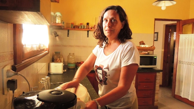 La mujer de la foto trabaja por la mañana limpiando casas y en un laboratorio de análisis clínicos por la tarde, y al volver de su jornada laboral de todo el día, por la noche es madre de dos adolescentes .Al llegar a su hogar esta con sus hijas para criarlas, guiarlas en esta sociedad tan difícil, ver que no les falte nada. Ellas son un ejemplo a seguir.