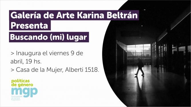 La Dirección de Políticas de Género inaugura una nueva muestra en su Galería de Arte. En esta ocasión se expondrá “Buscando (mi) lugar de la fotógrafa marplatense Karina Beltrán. La exposición quedará abierta al público el 9 de abril, a las 19 horas en Alberti 1518. Podrá visitarse hasta el 4 de mayo, de lunes a viernes de 8 a 17 horas.