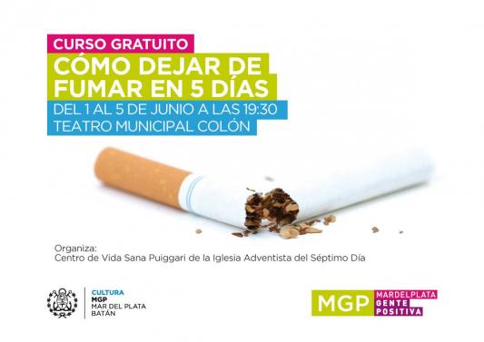 En el marco de conmemorarse el 31 de Mayo el Día Mundial sin Tabaco, en el Teatro Municipal Colón, con la presencia del Secretario de Cultura Leandro Laserna, Secretario de Salud Alejandro Cristaldi, el Director del Teatro Municipal Colón Luís Reales, el Director General del CEMA Julio Tuseddo, la Licenciada Liliana Maffio, el Pastor de la Iglesia Adventista Osvaldo Alzugaray y el Pastor del Instituto Adventista Manuel Belgrano Federico Pérez, se anunció el curso se que dictará de manera gratuita para dejar de fumar.