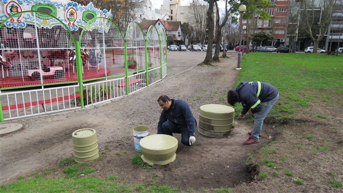 El Ente de Servicios Urbanos, a través de personal del Departamento de Espacios Verdes y el de Arbolado Público, del Departamento Técnico, Departamento de Servicios Generales y la Dirección de Espacios Públicos e Infraestructura, se organizó en dos frentes. Por un lado, se trabajó en el mantenimiento y reacondicionamiento del sector de juegos y relleno de areneros; limpieza y pintura de mobiliario urbano entre bancos y cestos papeleros; reparación de barreras de acceso; y remodelación de veredas y mosaicos para facilitar la transitabilidad en el espacio público.