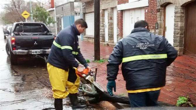 En total, Defensa Civil recibió 90 denuncias por caída de árboles, ramas, gajos y plantas de diverso porte que anegaron la senda peatonal, veredas y garajes, a la vez que produjeron la caída de cables de tendido eléctrico. Además, se registraron episodios aislados sobre vehículos que no revistieron mayores daños.