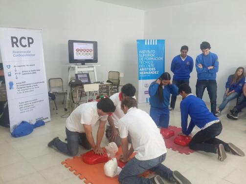 Esta vez, la capacitación en Reanimación Cardio Pulmonar (RCP) que brinda a la comunidad el Instituto Arístides Hernández, llegó al Colegio Gutenberg.