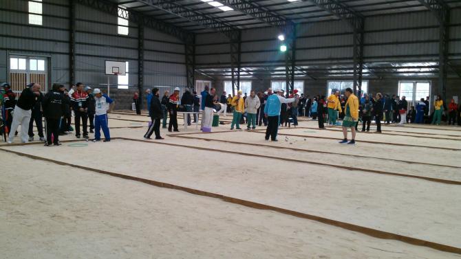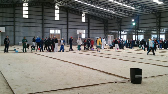 En el gimnasio cubierto de la Villa Marista, se levantaron las 15 canchas donde deportistas de todo el mundo disputan desde esta mañana, el certamen de Petanca.