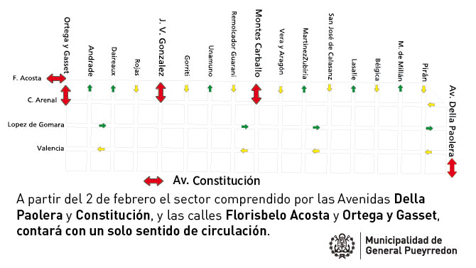 El Ente Municipal de Vialidad y Alumbrado Público, a través del área de Ingeniería de Transito procederá a señalizar el sentido de circulación original del área comprendida por las avenidas Della Paolera y Constitución y las calles Florisbelo Acosta y Ortega y Gasset.