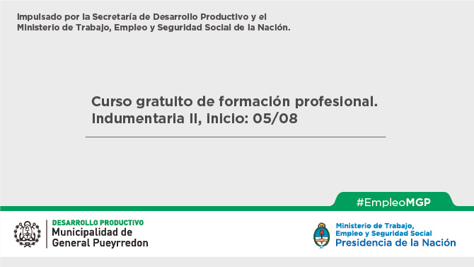 El día 5 de agosto comenzará la capacitación de oficio Indumentaria nivel II, organizadas por la subsecretaría de Desarrollo Productivo, Asuntos Agrarios y Economía Social de