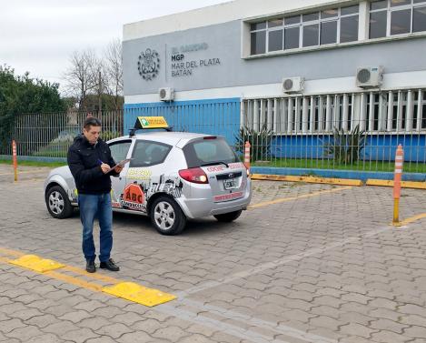 El cuerpo de inspectores de la Dirección General de Transporte que orienta Claudio Cambareri y que cuenta con el Jefe a Cargo de la División Licencias, Miguel Vidal, inicia su exámen con estacionamiento a 90 ª, luego se pasa a la pista interna donde se muestran habilidades y se estaciona de ambas manos.