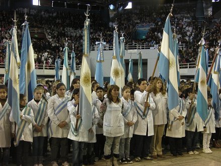 Luego del izado del pabellón nacional y de la entonación del Himno, ejecutado por la Banda Municipal y la del Ejército, habló la secretaria de Educación, Mónica Rodríguez Sammartino, quien se refirió al significado de la fecha: “Voy a tratar que no me embargue la emoción por ver a tantos chicos con tanto fervor patriótico, porque esto es algo increíble, la sensación que provoca mirar estas tribunas es algo que no me había pasado nunca. Hoy todos los argentinos conmemoramos un hecho histórico, homenajeamos al creador de la bandera nacional, el General Manuel Belgrano, pero también es un día simbólico. Todos los alumnos de 4to año de las ciudades de Mar del Plata y Batán van a prometerle lealtad a la bandera”. Además, expresó que “la historia no está determinada, somos nosotros los que hacemos la historia y por eso, espero que la historia de Belgrano y la creación de su bandera sirva, como un ejemplo, para que podamos reafirmar nuestra identidad nacional.”