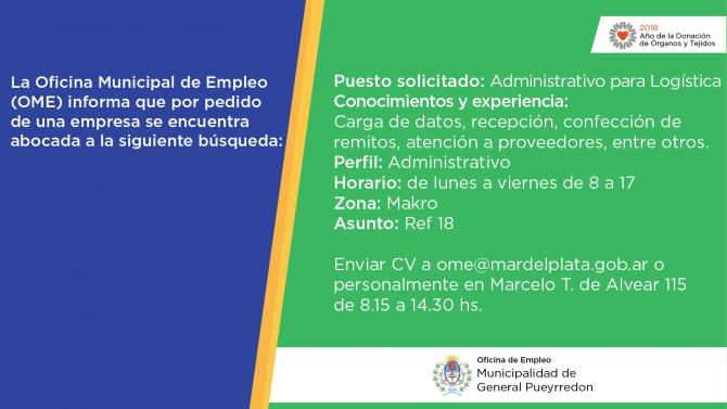 La Oficina Municipal de Empleo informa que por pedido de una empresa se encuentra abocada a la siguiente búsqueda: