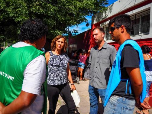 La Secretaria de Desarrollo Social de la Municipalidad, Patricia Leniz, supervisó este jueves el funcionamiento del dispositivo “El Estado en tu Barrio” en el barrio Las Heras. El programa que lleva su segunda semana consecutiva en el lugar, viene desarrollando las actividades en el horario de 9 a 14, en la plazoleta frente al Centro de Atención Primaria de la Salud ubicado en Heguilor 2699.