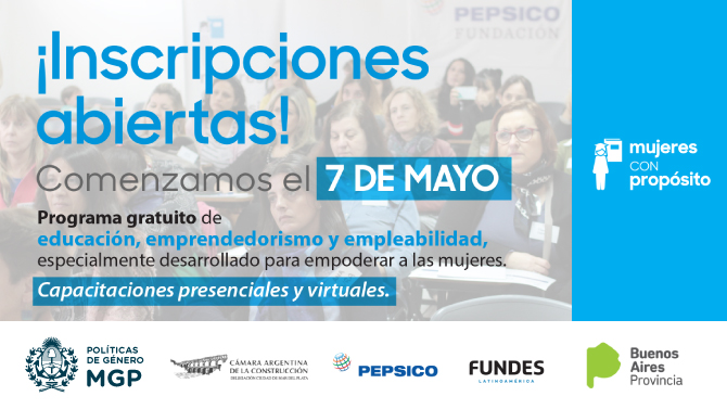 El arribo de Mujeres con Propósito en la ciudad es posible gracias al esfuerzo mancomunado de PepsiCo, Fundes Latinoamérica, Provincia de Buenos Aires, la Dirección de Políticas de Género de la Municipalidad de General Pueyrredon y la Cámara Argentina de la Construcción –Delegación Mar del Plata-.