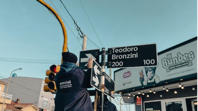 La Municipalidad de General Pueyrredon, a través del Ente Municipal de Vialidad y Alumbrado Público (EMVIAL), realizó las intervenciones necesarias para establecer a partir de hoy un único sentido de circulación en la calle Teodoro Bronzini (y su continuación Ortega y Gasset) en el tramo comprendido entre Beruti y Strobel estableciendo así un único sentido de circulación de sur a norte.