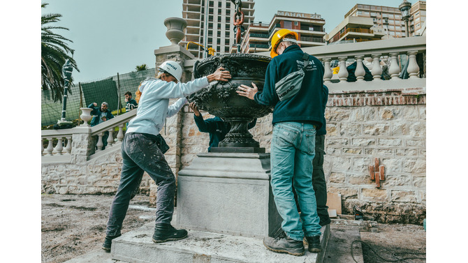 Las tareas de restauración incluyeron la reconstrucción total de pasamanos, balaustres, escalones, descansos, pilares, recubrimientos en piedra y reproducción de las juntas originales, además de la creación y colocación copones,