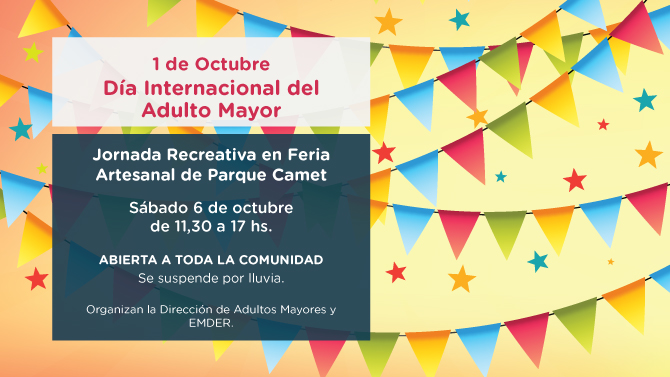 Por tal motivo, en conjunto con el EMDER, organizamos el día sábado 6 de octubre de 11.30 a 17 horas una Jornada Recreativa en la Feria Artesanal de Mayores del Parque Camet.
