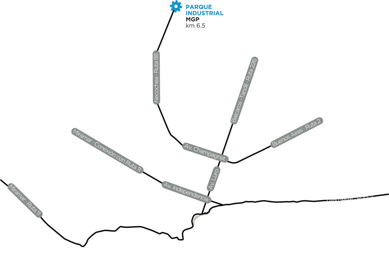 El Parque Industrial General Savio se encuentra sobre la Ruta Provincial Nfi 88, que conecta a Mar del Plata con Necochea, a sólo 9 kilómetros del centro urbano de Mar del Plata, en un nudo de vías de comunicación que permite la ágil vinculación con otras localidades y con terminales de trenes, puerto y aeropuerto. Esto permite una rápida conexión con el MERCOSUR y el resto de los mercados. Ver en Mapa