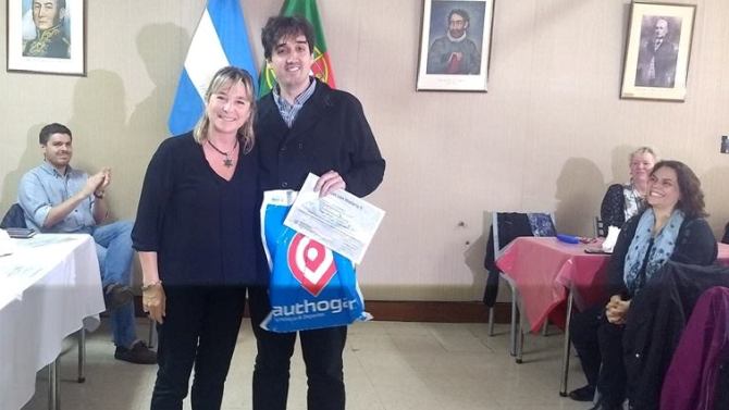 El premio –consistente en una tablet- fue entregado hoy por la titular de la oficina local de DD.HH., Sonia Rawicki, durante un desayuno multicultural realizado en el Club Portugués de Mar del Plata como parte de la conmemoración del Día de la Tradición.