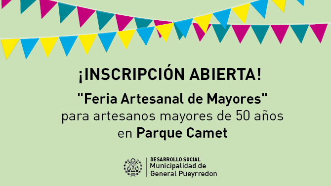 La Secretaría de Desarrollo Social a través del Área Tercera Edad, informa que se encuentra abierta la inscripción para ocupar stands en la "Feria Artesanal de Mayores" de Parque Camet, los cuales serán otorgados sin costo para el feriante.