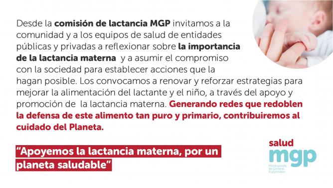 Desde la comisión de lactancia de la Secretaría de Salud, invitan a la comunidad y a los equipos de salud de instituciones públicas y privadas a reflexionar sobre la importancia de la lactancia materna y a asumir el compromiso con la sociedad para establecer acciones que la hagan posible.