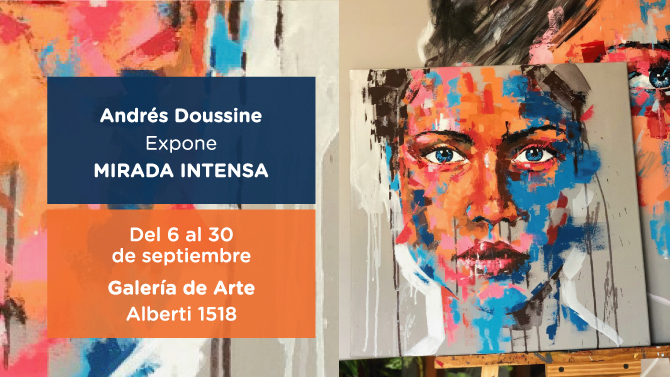 La Dirección de Políticas de Género presenta Mirada Intensa, la muestra de pinturas de Andrés Doussine.Las obras podrán visitarse del 6 al 30 de septiembre, de lunes a viernes de 8 a 20, en Alberti 1518.
