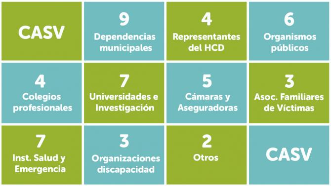 La Comisión Asesora de Seguridad Vial | CASV está coordinada por la Subsecretaría de Movilidad Urbana en representación del Departamento Ejecutivo e integrada por representantes del Departamento Ejecutivo y Deliberativo y diferentes organismos oficiales, asociaciones intermedias, colegios profesionales y ONGs, entre las que se destacan las que representan a familiares de víctimas.