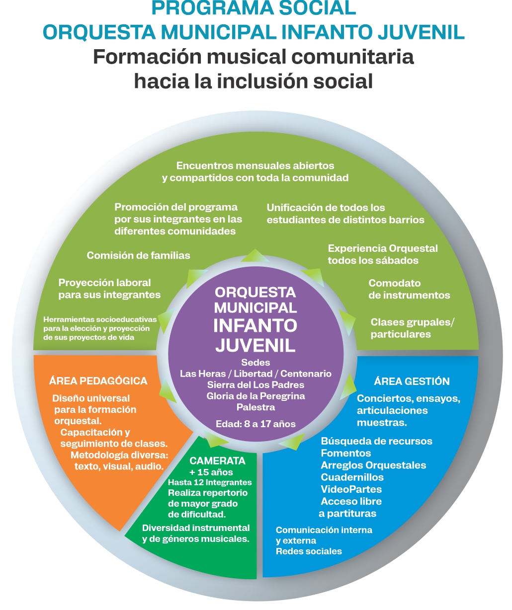 El programa está asentado en las necesidades socioculturales de la comunidad infantil y juvenil del Partido de General Pueyrredon, dando cabida bajo el formato de orgánico instrumental a las inquietudes estéticas y tratará de establecer comunión (común unión) entre los participantes de la orquesta.