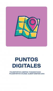 Los Puntos Digitales están ubicados en los Polideportivos Libertad (Ituzaingó 8350) y Colinas (Einstein 1502) y cuentan con 3 áreas con su respectivo equipamiento: Aprendizaje, Cine y Entretenimiento.