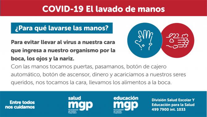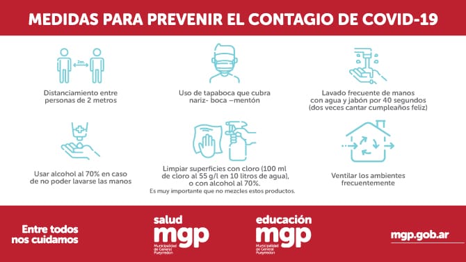 El virus ingresa a nuestro cuerpo a través de la nariz, la boca y los ojos, es por esta razón que debemos evitar tocarnos la cara. Con las manos tocamos puertas, pasamanos, botón de cajero automático, botón de ascensor, dinero y acariciamos a nuestros seres queridos, nos tocamos la cara y llevamos los alimentos a la boca. Es muy importante que sigamos siendo responsables y que respetemos las medidas de prevención que fuimos aprendiendo durante todo este tiempo.