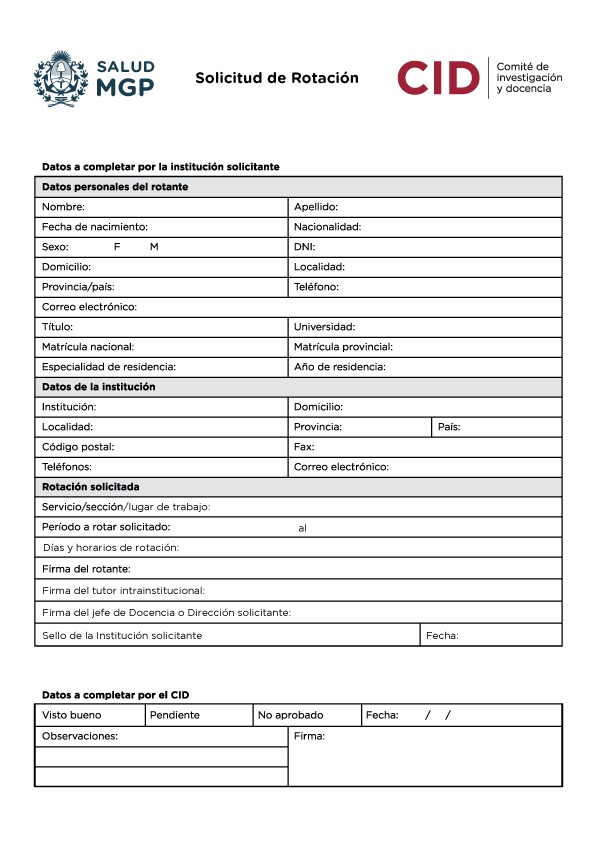 Deberán ser enviadas al mail [email protected], para su autorización antes de la fecha de rotación.