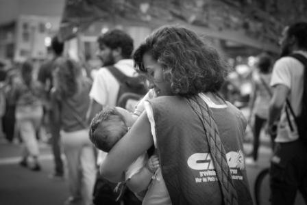 Fundamentación del autor: Buscando la definición de héroe entendí que son personas comunes que en un acto y momento clave generan un tipo de salvación para los que los rodean. Creo que ahí entendí qué foto mandar. La elegí por el amor, porque un acto de amor puede enseñarnos y salvarnos, colgándonos para siempre la capa de heroínas. En el Día de la Mujer una marcha más de todas las que hacemos las mujeres. Una mirada de amor, una pausa en el ritmo que la lucha requiere.