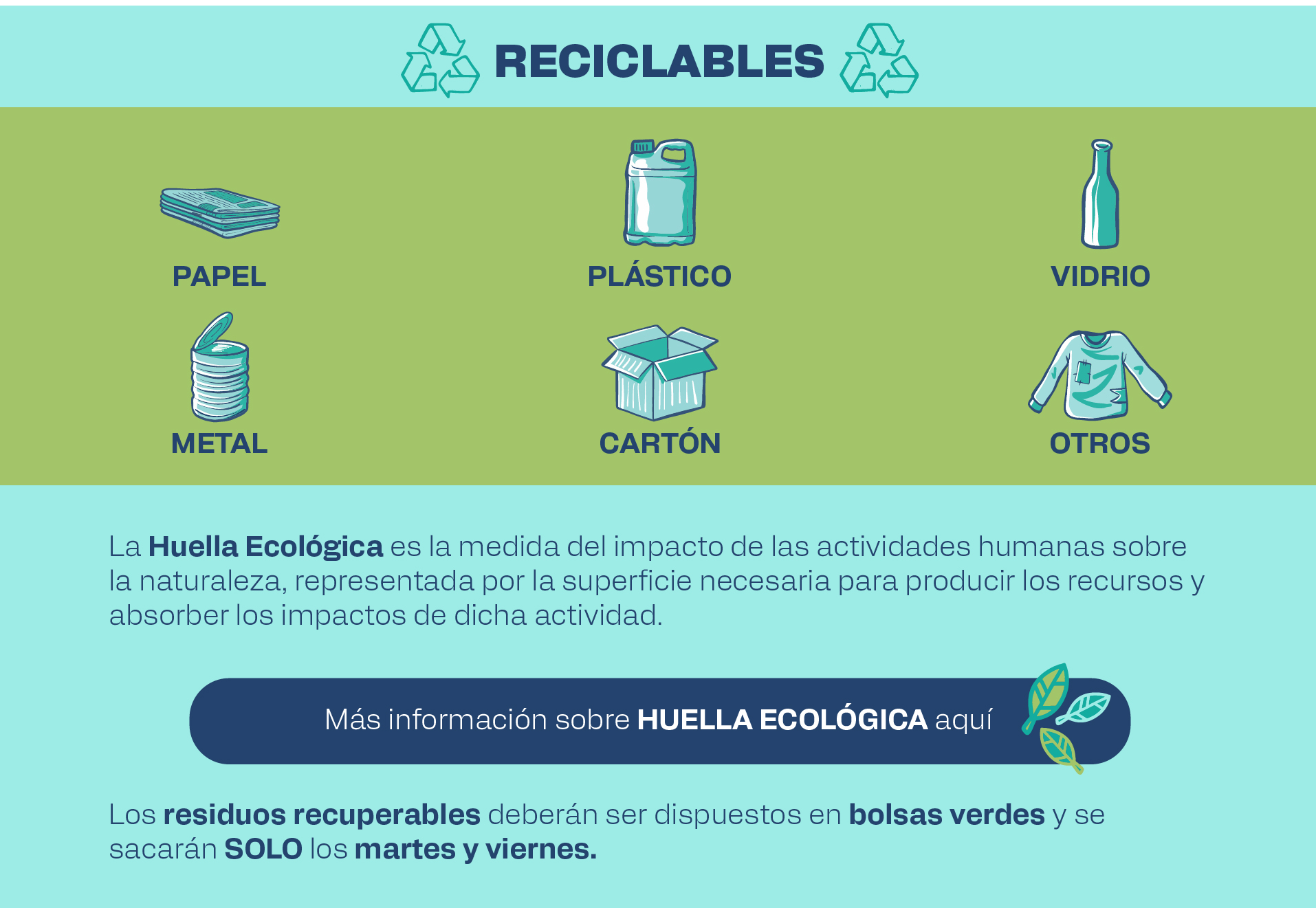Los residuos recuperables deberán ser dispuestos en bolsas verdes y se sacarán SOLO los martes y viernes.